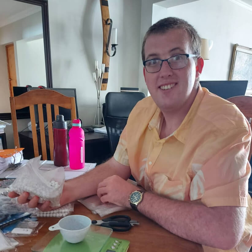 Angie: My goal is ultimately to try and get his name and business known to clients who could commission him to make unique gifts for them. I would also like this business to grow into a venture where we can create a small workshop type of environment where other Special Needs adults can join Michael and assist him with his beading projects and in that way create an income stream for themselves too.